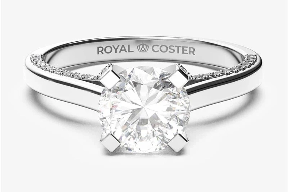 De Royal 201 Signature C collectie heeft een open zetting die speciaal is ontworpen voor de Royal 201 slijpvorm. Door deze open structuur kan het licht door alle 201 facetten bewegen, wat de schittering versterkt. De Embellished subcollectie bevat extra diamanten op de zetting voor nog meer detail en sprankeling.